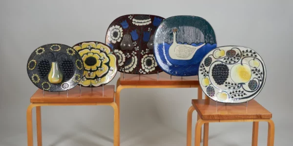 Stor samling dekorationsfat av Birger Kaipiainen på höstens Modern Art & Design i Helsingfors