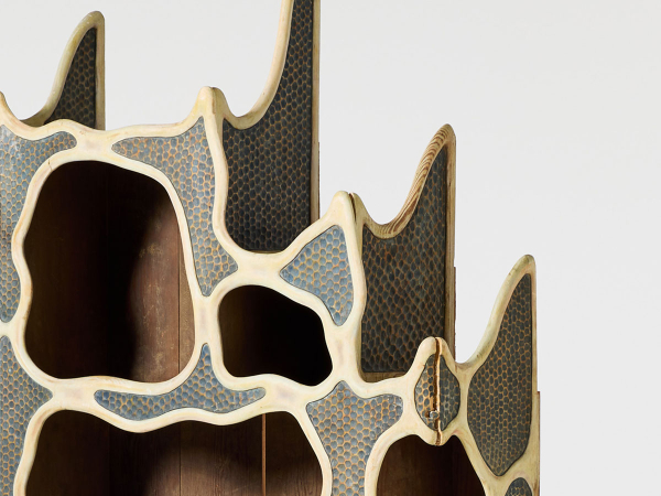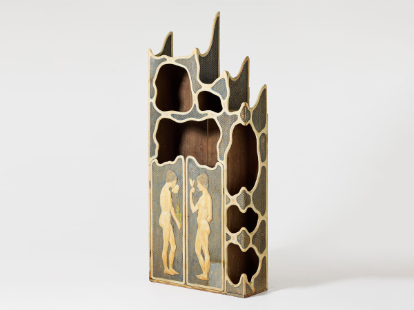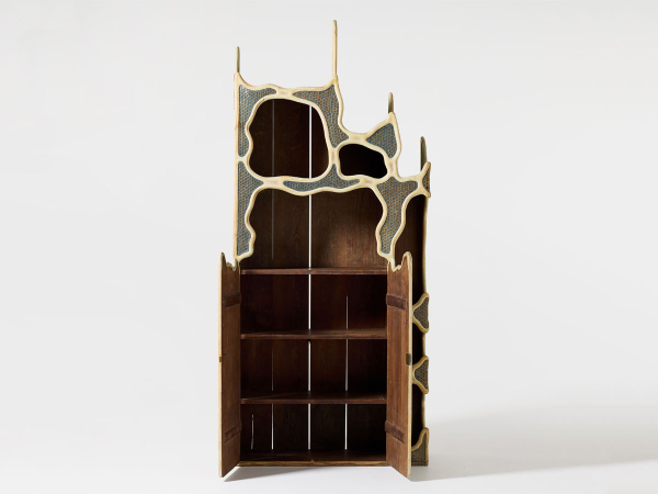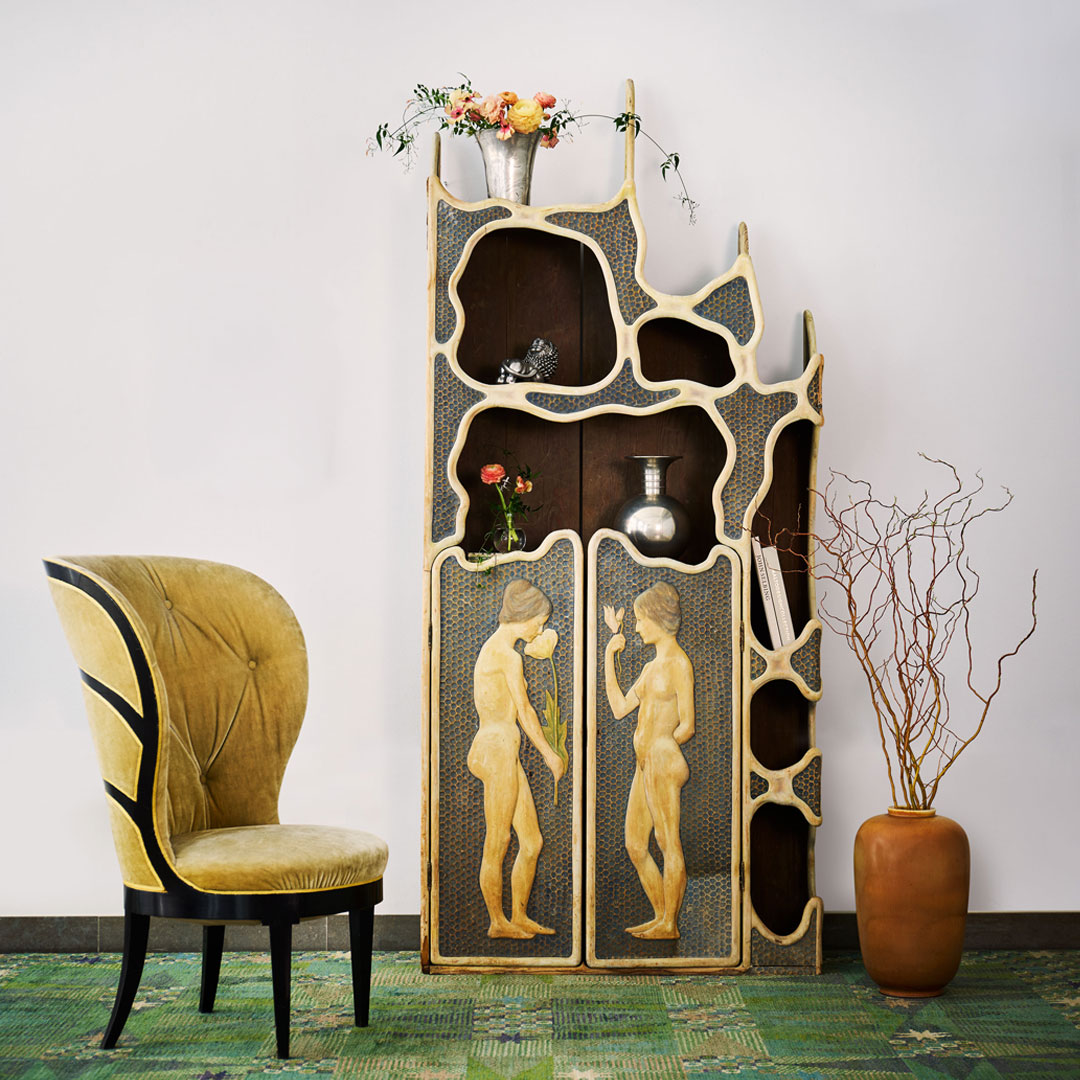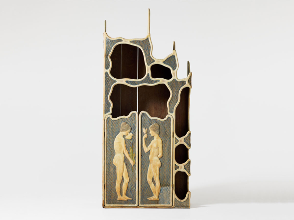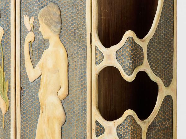 Skåpet, som mäter nära 2,3 meter i höjd, pryds av dörrar med stående kvinnofigurer och blommor samt sidor med florala mönster. Kvinnorna representerar två livsskeden och symboliserar livets kretslopp, medan de organiska linjerna och asymmetrin i formgivningen ger möbeln en nästan levande karaktär.