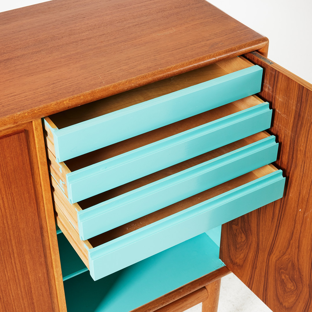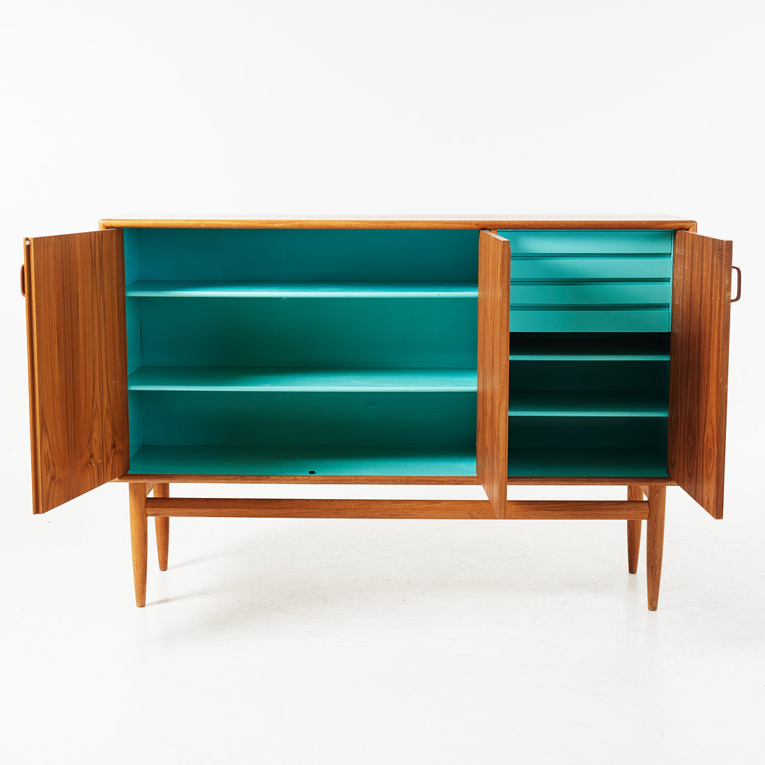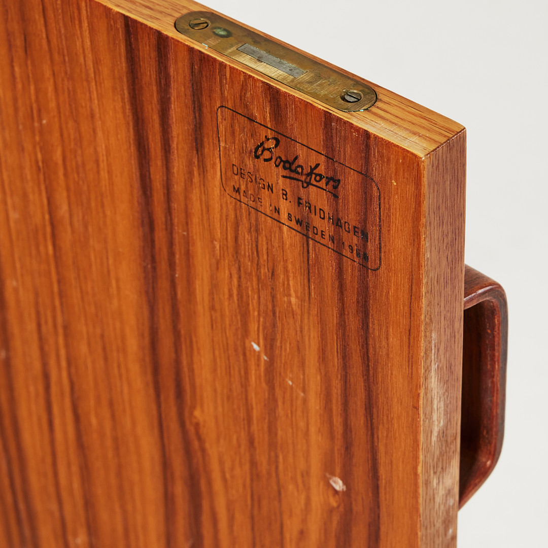 BERTIL FRIDHAGEN. Sideboard, Bodafors, fanerat med teak, invändigt bemålat, stämpelmärkt, tillverkat 1958.