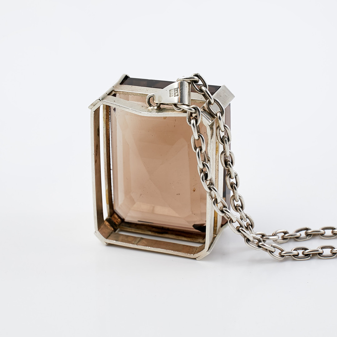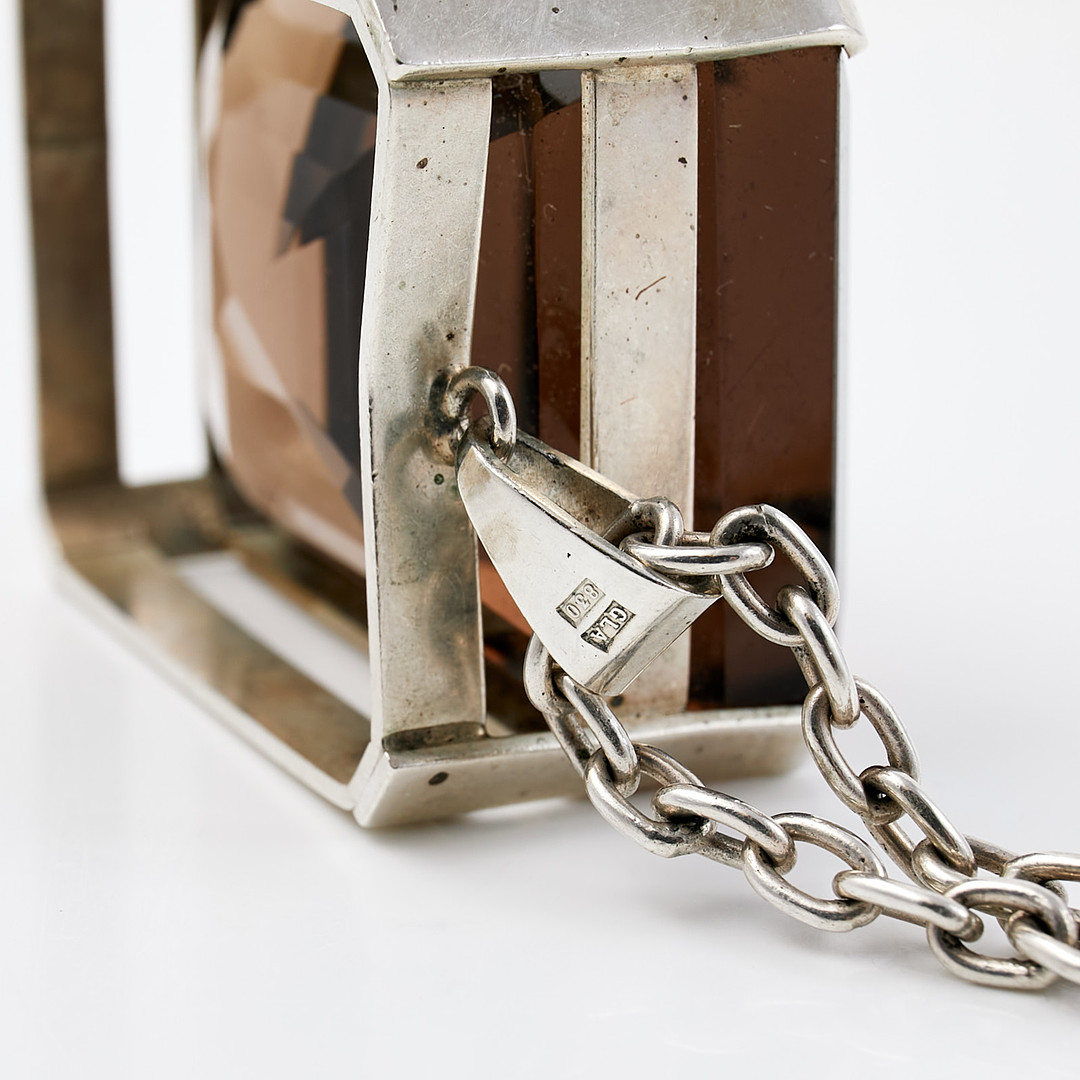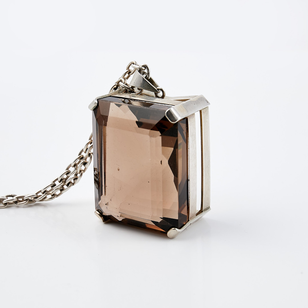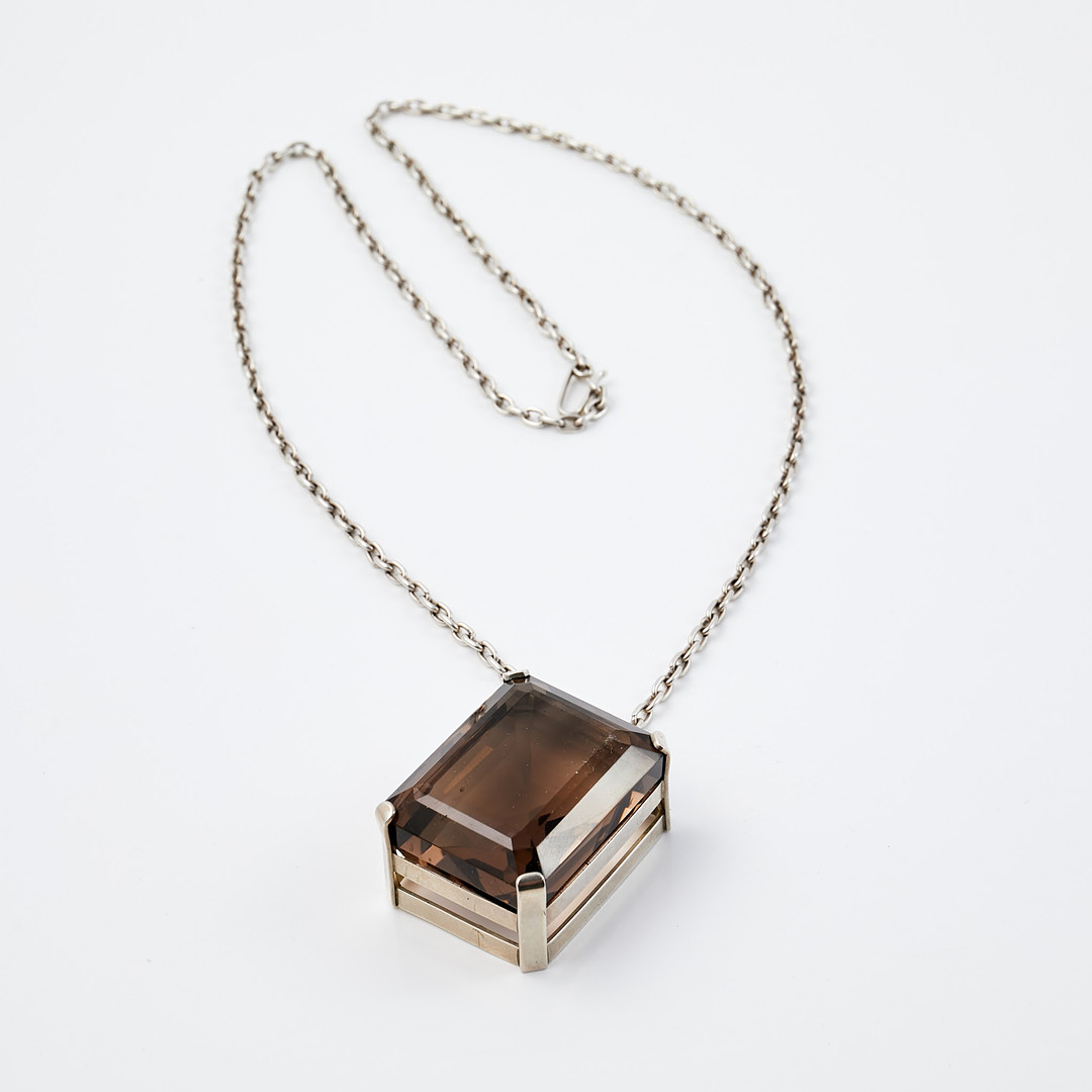 COLLIER, Silver, smaragdslipad rökkvarts, Alvebris Guldsmed Lennart.