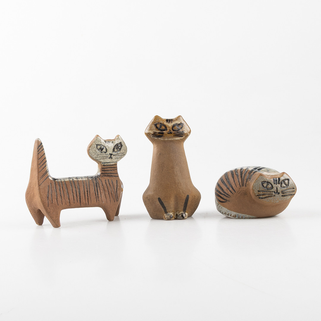 LISA LARSON. Figuriner, 3 stycken Katter, ur serien "Lilla Zoo", Gustavsberg, stengods.