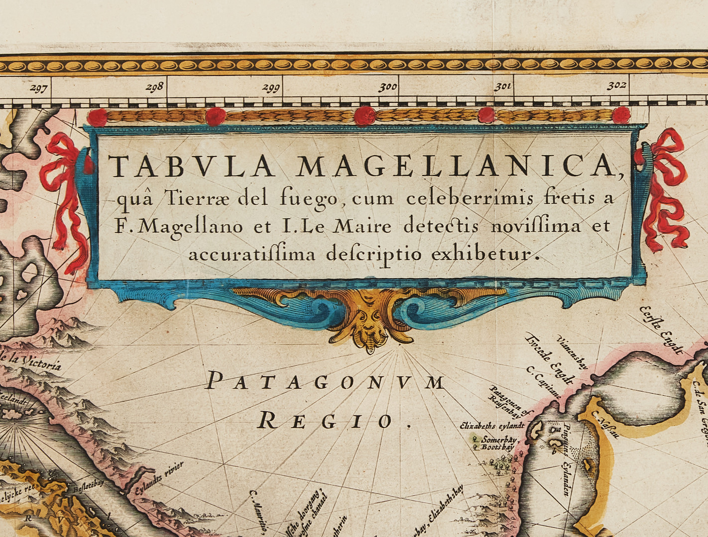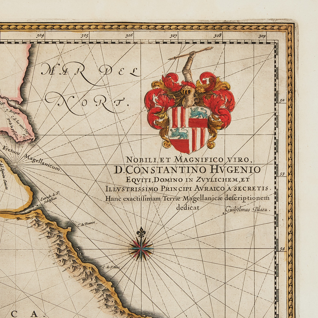 BLAEU'S MAP OF THE MAGELLAN STRAIT / SOUTH AMERICA, c. 1640.