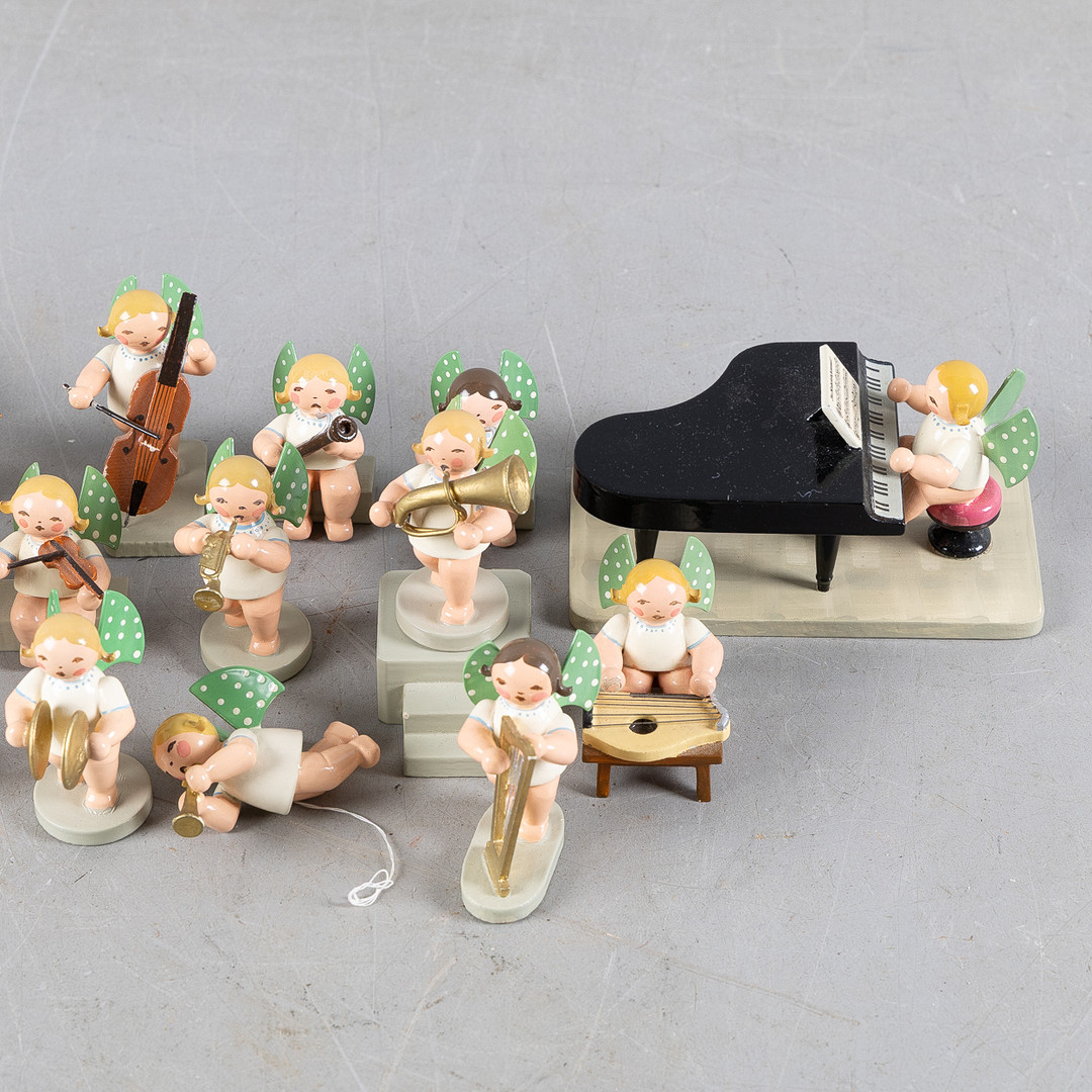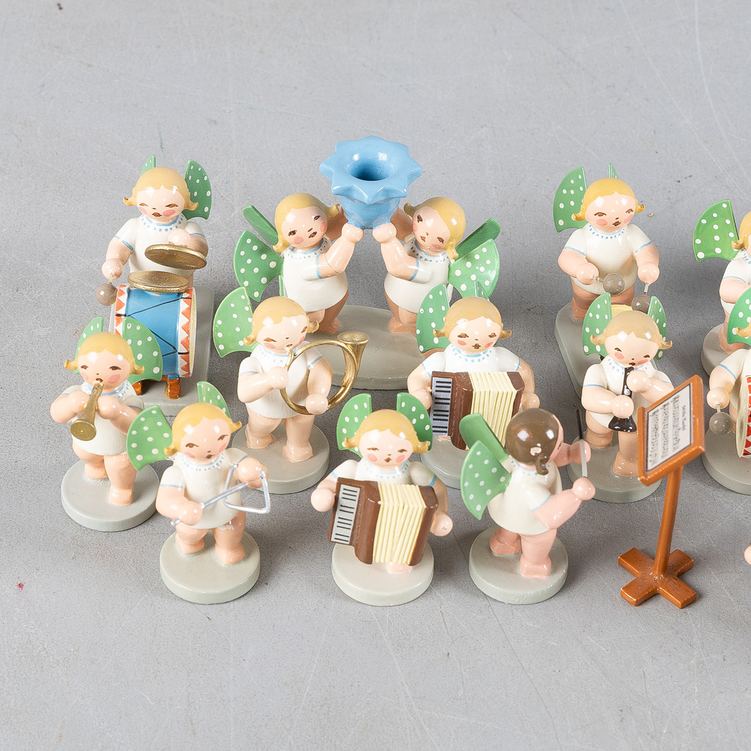 ERZGEBIRGE, Änglaorkester, 24 delar, bemålat trä, Tyskland, 1900-tal.
