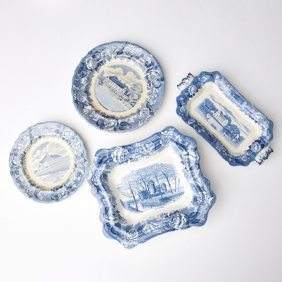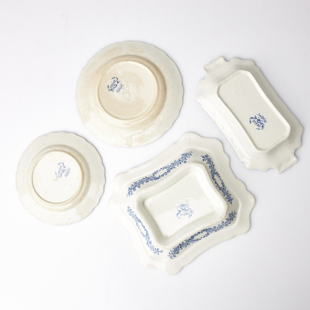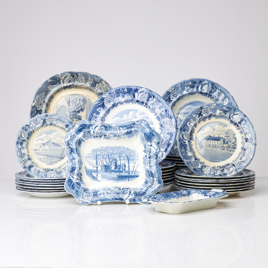 RÖRSTRAND, servisdelar, ”Skåne”, 35 delar, dekor i blått föreställande skånska slott och herresäten.