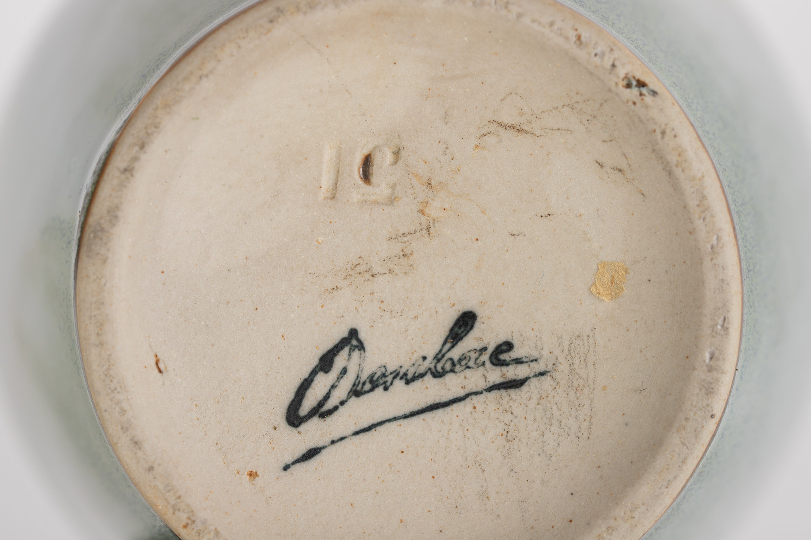 Alters- Und Gebrauchsspuren, Standring mit minimaler Produktionsbestoßung. Senftöpfchen am Innenrand bestoßen, partielle Defekte.