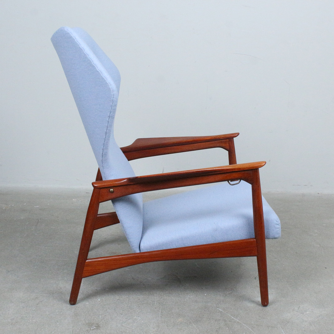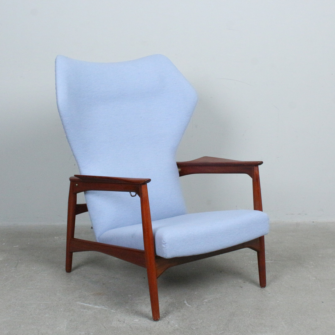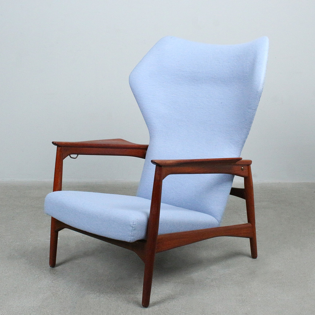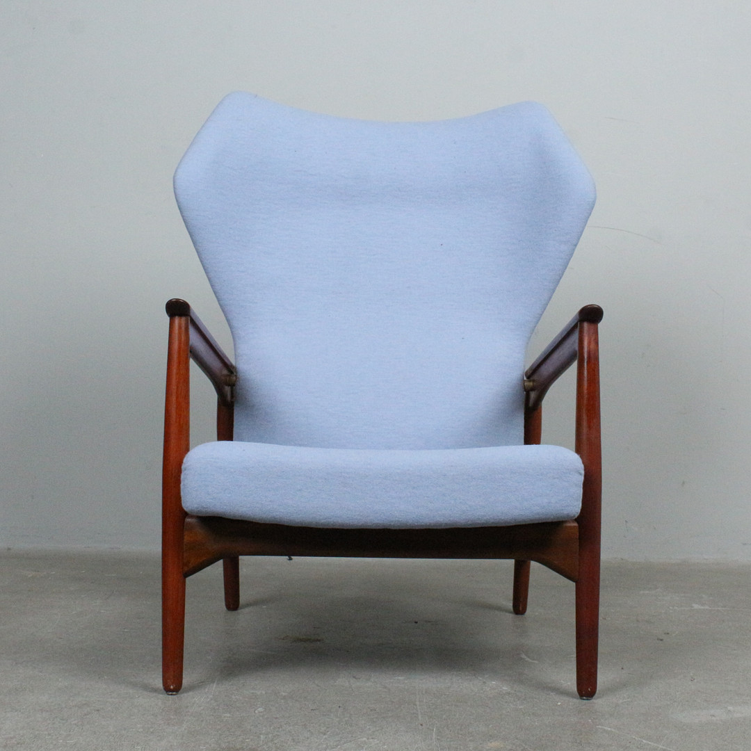 IB KOFOD LARSEN. Carlo Gahrn. Armlehnsessel / Wingback-Sessel, Modell 'Carlo', Teak, Entwurf 1954.