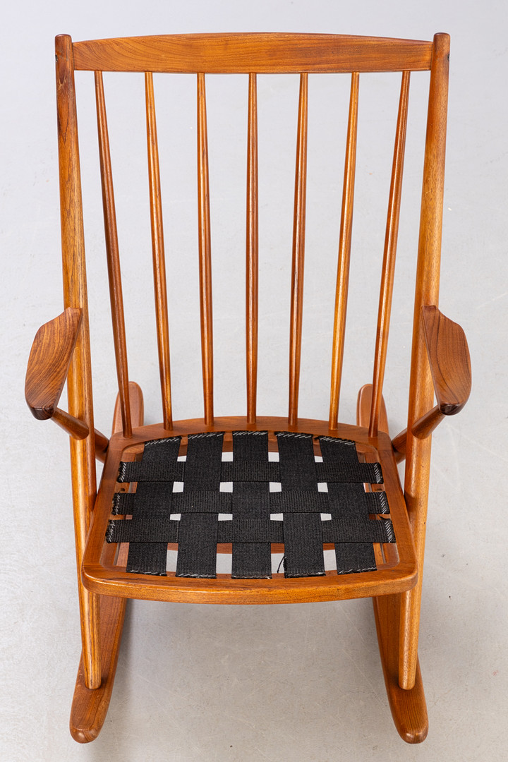 FRANK REENSKAUG. Bramin. Teak Schaukelstuhl. Dänemark, 1960er Jahre.