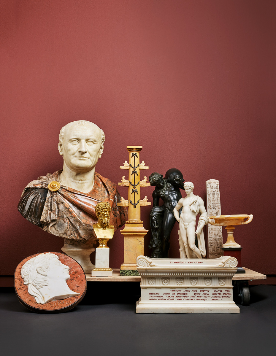 På temat Grand tour-objekt söker vi statyetter i brons, obelisker och sarkofager i olikfärgade marmorsorter, kejsarbyster i alla storlekar, miniatyrtempel i marmor, grekiska vaser, fragment av skulpturer och mosaiker med mera.